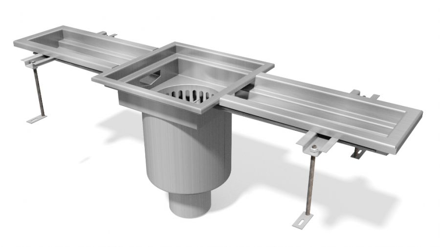 Сточный канал КВ-170 выполнен из нержавеющей стали класса 1.4301 уверяет дренаж воды из производственных помещений, а также из поверхностей расположенных на улице. Канал имеет стандартный уклон 1.5% и ширину 76 мм. Благодаря профилированной V-образной форме нижней части водопроводного лотка, позволяет свести к минимуму, количество стоячей воды, при этом улучшается общая гигиена использования дренажной системы. Ранты канала укреплены пласковниками с целю предохраниения их от повреждения. С каналом интегрированый тпар с отводом боковым или нижним. Каналы имеют монтажные усы, позволяющие надежно закреплять их в прикрепляемой поверхности, они также оснащены регулируемыми анкерами, которые позволяют правильно позиционировать канал перед вылитием пола. Канал можно выполнить в сегментах. Для того чтобы облегчить транспорт и монтаж сегменты снабжены монтажными фланцами фиксированными болтами. Другие размеры, конфигурации - по вашему индивидуальному запросу.